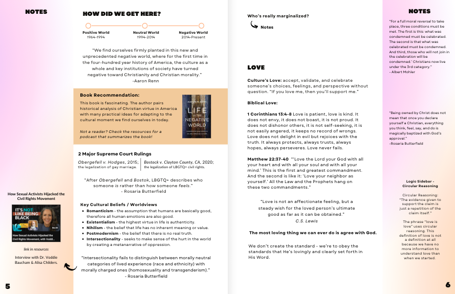 “In a time of cultural chaos and confusion, the Truth and Love seminar will equip your church to navigate the choppy waters of sexuality and gender from a historic and conservative Biblical perspective. Bethany does a fantastic job of taking a complex issue and making it both understandable and actionable in real life scenarios. It is well researched, grace filled, and everyone will walk away with a resource guide that is absolute gold!”